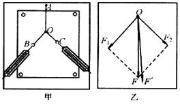 “验证力的平行四边形定则”的实验装置如图甲所示,其中A为固定橡皮筋的图钉,O为橡皮筋与细绳的结点,OB和OC为细绳。图乙是在白纸上根据实验结果画出的图。 ![]()