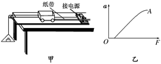 (4分)在“验证牛顿运动定律”的实验中,实验装置如图甲所示,有一位同学通过实验测量作出了图乙中的A图线.试分析:①A图线不通过坐标原点的原因是__________________________________________;②A图线上部弯曲的原因是________________________________________________.
