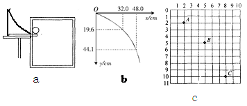 在“研究平抛物体运动”的实验中:(1) (1分)为什么要使固定有斜槽的木板保持水平?__________________________________。(2) (2分)为什么要保证小球每次从同一固定位置自由滑下?___________________________。(3) (3分)如图是某同学实验得到的小球做平抛运动的轨迹,建立了坐标系,测出a、b、c三点的坐标,g取10m/s2,根据图中数据回答:①坐标原点O是小球做平抛运动的初始位置吗?__________________________。②小球做平抛运动的初速度是 m/s.