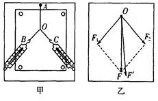 “验证力的平行四边形定则”的实验情况如图甲所示,其中A为固定橡皮筋的图钉,O为橡皮筋与细绳的结点,OB和OC为细绳。图乙是在白纸上根据实验结果画出的图。![]()