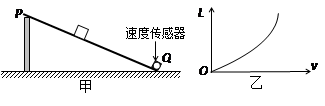 ,②W∝v,③W∝v 2。他们的实验装置如图甲所示,PQ为一块倾斜放置的木板,在Q处固定一个速度传感器(用来测量物体每次通过Q点时的速度),每次实验,物体从不同初始位置处由静止释放。![]()