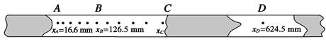 球落点痕迹如图2(b)所示,其中米尺水平放置,且平行于