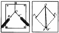 在探究求合力的方法时,实验情况如图甲所示,其中A为固定橡皮筋的图钉,O为橡皮筋与细绳的结点位置,OB和OC为细绳,图乙是在白纸上根据实验结果画出的图示。![]()