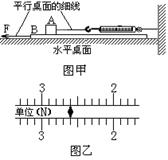 (6分)一个实验小组的同学设计了一个测量动摩擦因数的试验。如图甲所示,把弹簧测力计的一端固定在墙上,另一端与一物块A相连,用力F水平向左拉物块A下面的金属板B,金属板B向左运动,此时测力计的示数稳定(图乙中已把弹簧测力计的示数放大画出),则物块A与金属板B间的滑动摩擦力的大小是_________N。若用弹簧测力计测得物块A重13N,根据下面表格中给出的动摩擦因数,则可推算出物块A的材料是_______。