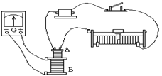 用如图装置研究电磁感应现象。在图示情况,当电键闭合瞬时,观察到电流表指针向右偏转,电键闭合一段时间后,为使电流表指针向左偏转,可采用的方法有 ![]()