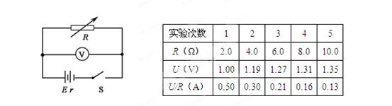 某同学要测量一节干电池的电动势和内阻,实验器材仅有一个电压表(内阻很大)、一个电阻箱、一个开关和导线若干,该同学按如图所示电路进行实验,测得的数据如下表所示.![]()