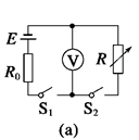 测量干电池电动势E和内阻r的电路原理图。图中S为开关,R为滑动变阻器,固定电阻