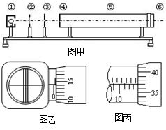 (1)在“用双缝干涉测光的波长”实验中,装置如图甲所示,其中①为光源,②为滤光片,③为________(选填“单缝”或“双缝”),它的作用是________.![]()