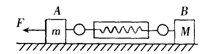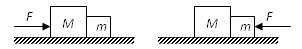 如图所示,在光滑的桌面上有由同种材料做成的M、m两个物块,现用力F推物块m,使M、m两物块在桌上一起向右加速,则M、m间的相互作用力为:![]()