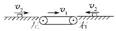 如图所示,一粗糙的水平传送带以恒定的速度v1沿顺时针方向运动,传送带的左、右两端皆有一与传送带等高的光滑水平面,一物体以恒定的速率v2沿水平面分别从左、右两端滑上传送带,下列说法正确的是![]()