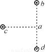 如图所示,三根长直导线垂直于纸面放置,通以大小相同,方向如图示的电流,ac垂直于bd,且ab=ad=ac,则a点处磁感应强度B的方向为(????? )