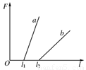 一个实验小组在“探究弹力和弹簧伸长的关系”的实验中,使用两条不同的轻质弹簧a和b,得到弹力与弹簧长度的图象如右图所示.下列表述正确的是( )