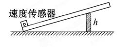 (6分)为验证动能定理,某同学设计了如下实验.将一长直木板一端垫起,另一端侧面装一速度传感器,让小滑块由静止从木板h高处(从传感器所在平面算起)自由滑下至速度传感器时,读出滑块经此处时的速度v,如图所示。多次改变滑块的下滑高度h(斜面的倾角不变),对应的速度值记录在表中: