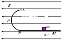 (18分)如图所示,现有一个小物块,质量为m=80g,带上正电荷q =210-4C。与水平的轨道之间的滑动摩擦系数m= 0.2,在一个水平向左的匀强电场中,E = 4103V/m,在水平轨道的末端N处,连接一个光滑的的半圆形轨道,半径为R=40cm,取g = 10m/s2,求: