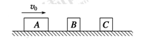 (9分)如图所示,光滑水平轨道上有三个木块A、B、C,质量分别为mA=3m、mB=mC=m,开始时 B、C均静止,A以初速度v0向右运动,A与B碰撞后分开,B又与C发生碰撞并粘在一起,此后A与B间的距离保持不变.求B与C碰撞前B的速度大小.