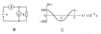 图甲电路中交流电源电压随时间的变化规律如图乙所示.若电阻为R=100Ω,则理想电流表和电压表的示数分别为( )