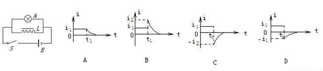 如图所示的电路中,开关s闭合电路达到稳定状态时,流过灯泡A的电流为,流过线圈L的电流为,且 .在t1时刻将开关s断开,那么流过灯泡A的电流随时间的变化图像是( )