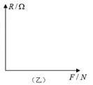 (1)在如图(乙)所示的坐标系中画出电阻R随压力F变化的图线,并归纳出电值R随压力F变化的函数关系式。
