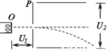 如图所示,初速度不计的电子从电子枪中射出,在加速电场中加速,从正对P板的小孔射出,设加速电压为U1,又垂直偏转电场方向射入板间并射出,设偏转电压为U2。则: