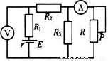 图所示电路中,电源电动势为E,内阻为r,当变阻器的滑动触头P向上移动时,电压表V的示数U和电流表A的示数I的变化情况是: