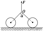 (9分)如图所示,两个完全相同的球,重力大小均为 ,两球与水平地面间的动摩擦因数都为,且假设最大静摩擦力等于滑动摩擦力,一根轻绳两端固结在两个球上,在绳的中点施加一个竖直向上的拉力,当绳被拉直后,两段绳间的夹角为.问当F至少为多大时,两球将会发生滑动?