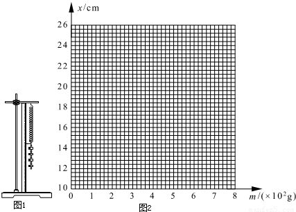 (1)根据所测数据,在下面的坐标纸(图2)上画出弹簧指针所指刻度尺的刻度x与钩码质量m的关系图线.