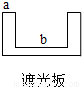 有位同学利用DIS实验这样来测小车的加速度:他做了一个U字型遮光板,遮光片a宽度为5mm,两遮光片间的透光部分距离b为10cm,如图所示.将此遮光板装在小车上,实验时测得遮光时间如下表,则小车的加速度约为 .要提高测量的精确度,可以采取的方法是 .