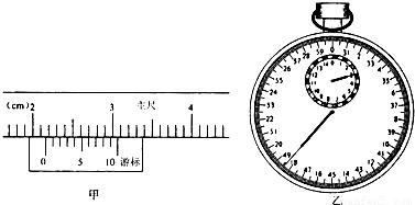 (2)用游标卡尺测得摆球的直径如图甲所示,可读出直径d= cm;请在图中乙的停表上,画出两个“?”(标注出实验中指针指示的正确位置)以标明测定结果中最准确的数据所对应的时间(此时停表指示的时间是错误的)