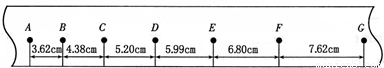 (2)用打点计时器记录了被小车拖动的纸带的运动情况,在纸带上确定出A、B、C、D、E、F、G共7个计数点.其相邻点间的距离如图所示,每两个相邻的计数点之间还有4个打印点未画出.