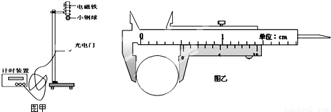 ①如图乙所示,用游标卡尺可测得小钢球的直径:d=______cm;实验时将小钢球从图示位置由静止释放,由数字计时器读出小球通过光电门的时间△t=1.2×10-2s,则小球经过光电门时的瞬时速度为______m/s(保留2位有效数字).
