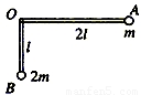 一质量不计的直角形支架两端分别连接质量为m和2m的小球A和 B.支架的两直角边长度分别为2l和l,支架可绕固定轴O在竖直平面内转动,如图所示.开始时OA边处于水平位置,由静止释放,不计任何阻力.转动中设OA边与水平方向的夹角为θ,则当A球速度达最大时θ为