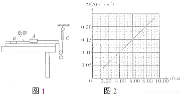 请以△v2为纵坐标,以s为横坐标在方格纸中作出△v2-s图象,若测出小车A质量为0.2kg,结合图象可求得小车所受合外力的大小为F= N.