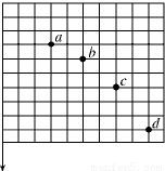 某同学在研究平抛运动的实验中,在小方格纸上画出小球做平抛运动的轨迹后,又在轨迹上取出a、b、c、d四个点(轨迹已擦去),已知小方格纸的边长L=2.5cm,g取10 m/s2,请你根据小方格纸上的信息,通过分析计算完成下面几个问题: