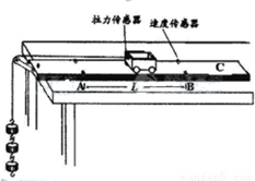某实验小组利用拉力传感器和速度传感器探究“动能定理”,如图,他们将拉力传感器固定在小车上,用不可伸长的细线将其通过一个定滑轮与钩码相连,用拉力传感器记录小车受到拉力的大小.在水平桌面上相距50.0cm的A、B两点各安装一个速度传感器记录小车通过A、B时的速度大小.小车中可以放置砝码.