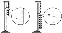 某同学和你一起探究弹力和弹簧伸长的关系,并测弹簧的劲度系数k.做法是先将待测弹簧的一端固定在铁架台上,然后将最小刻度是毫米的刻度尺竖直放在弹簧一侧,并使弹簧另一端的指针恰好落在刻度尺上.当弹簧自然下垂时,指针指示的刻度数值记作L;弹簧下端挂一个50g的砝码时,指针指示的刻度数值记作L1;弹簧下端挂两个50g的砝码时,指针指示的刻度数值记作L2;…;挂七个50g的砝码时,指针指示的刻度数值记作L7.