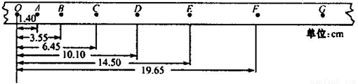 某同学在“测定匀变速直线运动的加速度”的实验中,用打点计时器记录了被小车拖动的纸带的运动情况.某次实验纸带的记录如图所示,纸带上O、A、B、C、D、E、F、G为计数点,每相邻两个计数点间还有4个点没有画出,由图可知纸带的加速度等于
