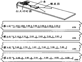 (2)当我们分别用同样的橡皮筋1条、2条、3条…..并起来进行第一次、第二次、第三次…..实验时,每次实验中橡皮筋拉伸的长度应保持一致,我们把第一次实验时橡皮筋对小车做的功记为W.