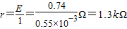 (1)甲同学用量程为0~1V、内阻约10kΩ的电压表测水果电池的电压时读数为0.74V;用欧姆表直接测水果电池的两极,读得此时的读数为9kΩ;用灵敏电流表直接接水果电池的两极,测得电流为0.55mA.甲同学通过自己的分析认为该水果电池的电动势为0.74V,由全电路欧姆定律得内阻为