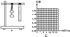 (1)根据实验数据在图乙的坐标纸上已描出了前四次测量的弹簧所受弹力大小F跟弹簧总长X之间的函数关系点,请把第5、6次测量的数据对应的点描出来,并作出F-X图线.