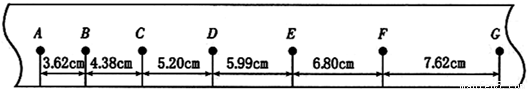 某同学在“探究小车速度随时间变化的规律”的实验中,用打点计时器记录了被小车拖动的纸带的运动情况,在纸带上确定出A、B、C、D、E、F、G共7个计数点.其相邻点间的距离如图所示,每两个相邻的计数点之间还有4个打印点未画出.