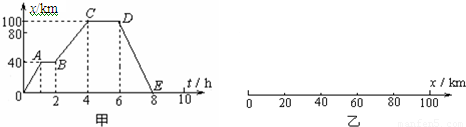 (1)根据图甲在图(乙)所示的位置坐标轴上标出A、B、C、D、E各点代表的汽车的位置;