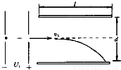 一束电子流在U1=500V的电压作用下加速度后垂直于平行板间的匀强电场飞入两板间的中央,如图所示.若平行板间的距离d=1cm,板长l=5cm,求:至少在平行板上加多大电压U2才能使电子不再飞出平行板?