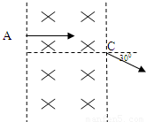 如图所示,一束电子(电荷量为e)以速度v从A点垂直射入磁感应强度为B,宽为d的匀强磁场中,从C点穿出磁场时速度方向与电子原来入射方向的夹角为30°,求: