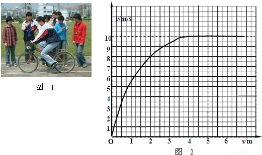 人骑自行车由静到动,除了要增加人和车的动能以外,还要克服空气及其他阻力做功.为了测量人骑自行车的功率,如图1第一活动小组进行了如下实验:在离出发线5m、10m、20m、30m、…70m的地方分别划上8条计时线,每条计时线上附近站几个学生,手持秒表测运动时间.听到发令员的信号后,受测者全力骑车由出发线启动,同时全体学生都开始计时.自行车每到达一条计时线,站在该计时线上的几个学生就停止计时,记下自行车从出发线到该条计时线的时间.