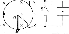 (1)开关S断开,极板间有一电荷量为q、质量为m的带正电粒子恰好静止,试判断OM的转动方向和角速度的大小.