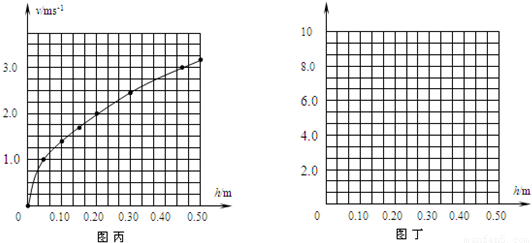 (1)根据根据上表的数据和图丙中图象的形状,可猜想v和h之间的关系为______;为验证猜,请在图丁中确定纵轴所表示的物理量,并另作 图象,若该图象的形状为______,说明猜想正确.