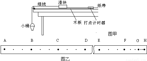 实验装置如图甲,长木板水平放置,装有砂子的小桶(砂重可调整)通过细线绕过定滑轮与木块相接,木块后侧固定纸带,纸带穿过打点计时器的限位孔,细线的长度大于桌面高度.实验时打开电源开关,用手推动一下木块,木块拖动纸带沿水平运动,打点计时器在纸带上打下一系列点迹.