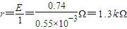 (1)甲同学用量程为0~1V、内阻约10kΩ的电压表测水果电池的电压时读数为0.74V;用欧姆表直接测水果电池的两极,读得此时的读数为9kΩ;用灵敏电流表直接接水果电池的两极,测得电流为0.55mA.甲同学通过自己的分析认为该水果电池的电动势为0.74V,由全电路欧姆定律得内阻为