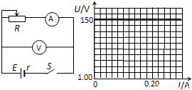 在《测定电源电动势和内阻》的实验中,某同学所用的电路图如图所示,测得的数据如下表: