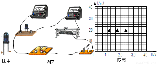 (3)根据表中数据,在图丙所示的坐标纸中画出该发光二极管的I-U图线.